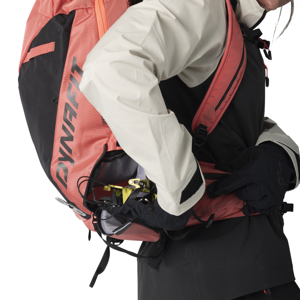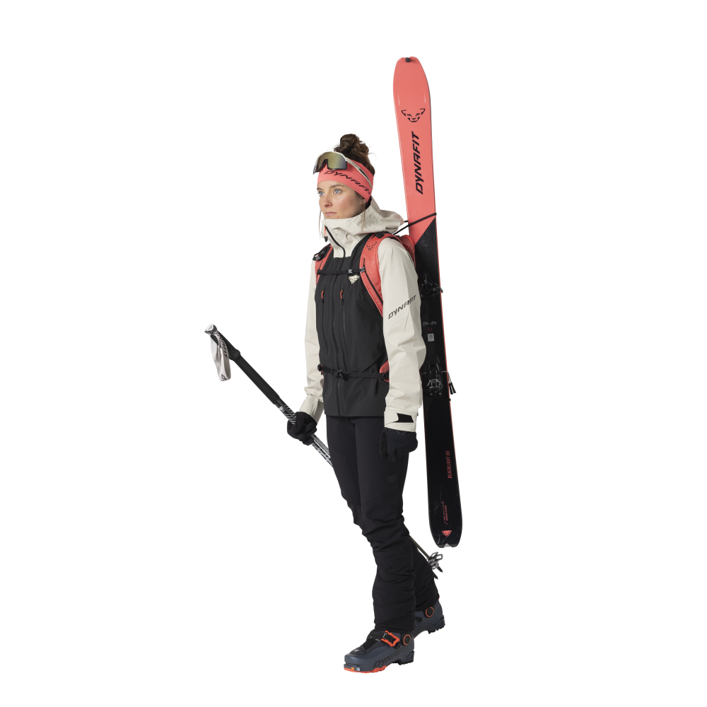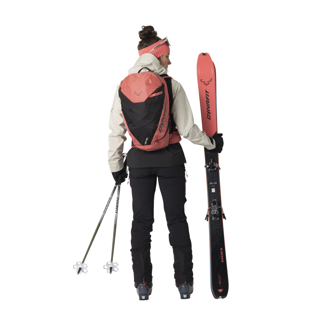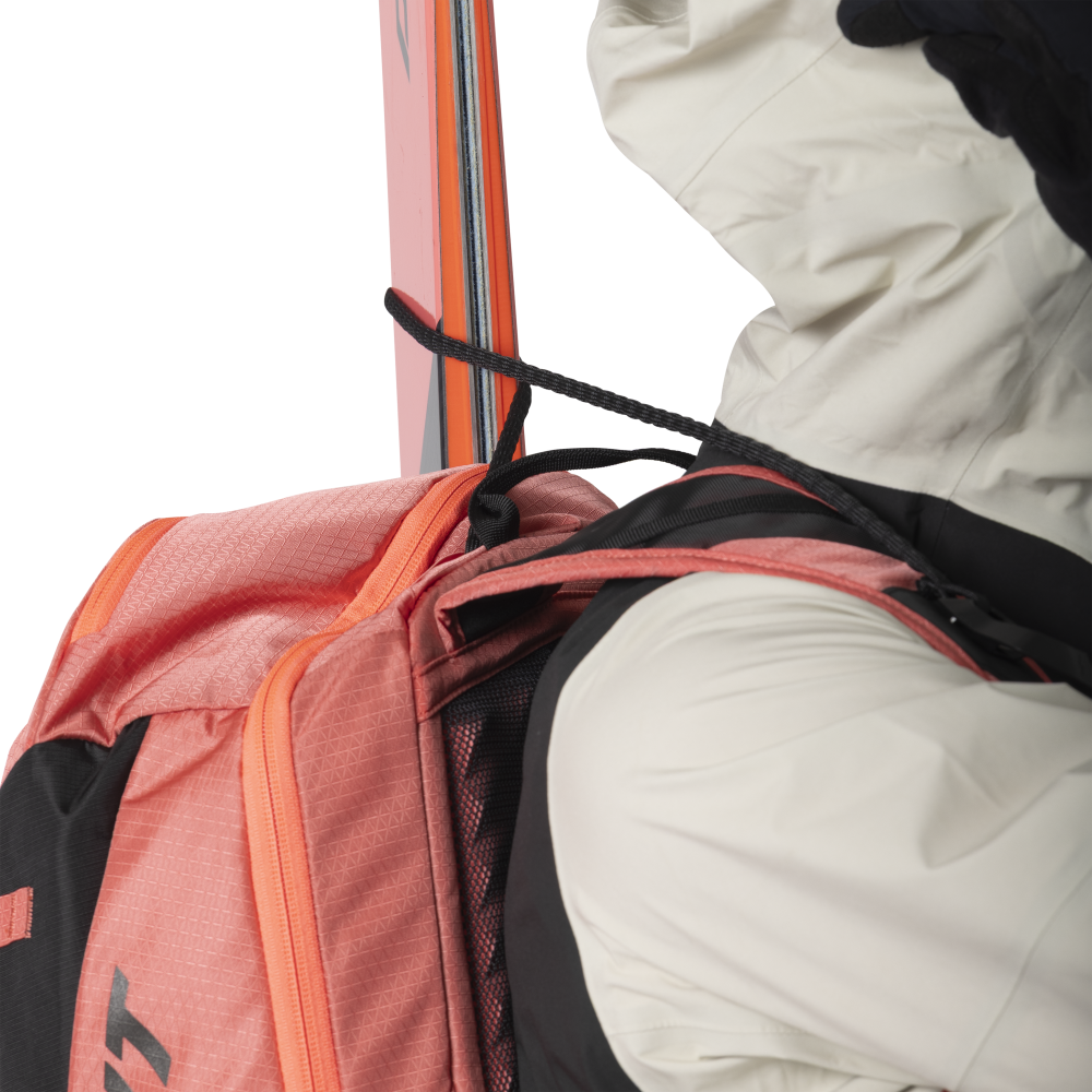 Praktický úchyt na lyže umožňuje rýchle upevnenie lyží počas balenia. Priedušný, anatomický nosný systém s dĺžkou chrbta prispôsobenou potrebám žien ponúka vysokú úroveň pohodlia. Materiál odolný voči oderu zaisťuje potrebnú robustnosť pri kontakte so skalami.
