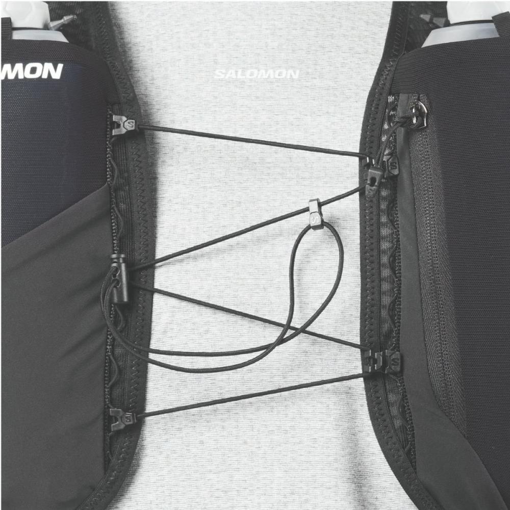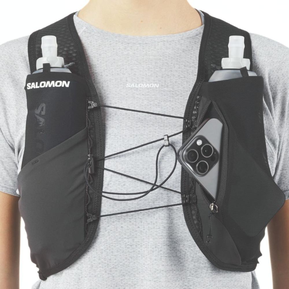 Bežecká vesta Salomon Gravel Skin 4 black ponúka priestor na všetko, čo na tratiach potrebujete a je nevyhnutnou výbavou každého bežca.