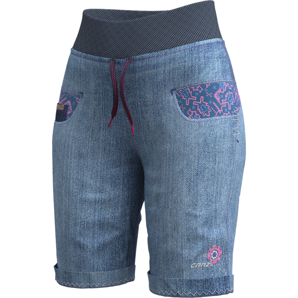Pohodlné dámske voľnočasové kraťasy Crazy Short Aria light jeans s pružným pásom a farebnými vreckami, ktoré zaujmú svojim nevšedným dizajnom.
