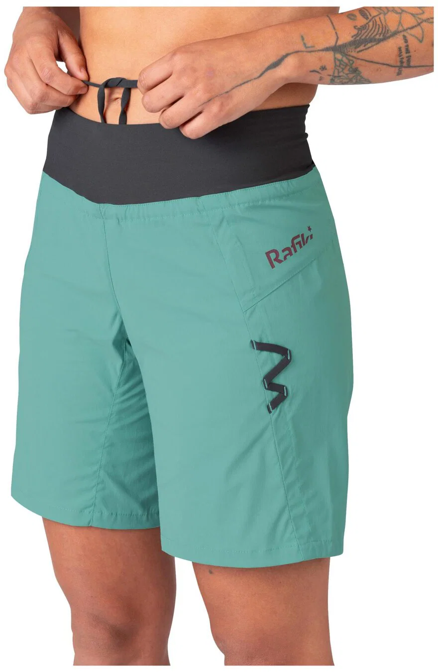Dámske lezecké kraťasy Rafiki Noia W wasabi/magnet v štýle boy fit so širokými nohavicami z ľahkého a priedušného materiálu.