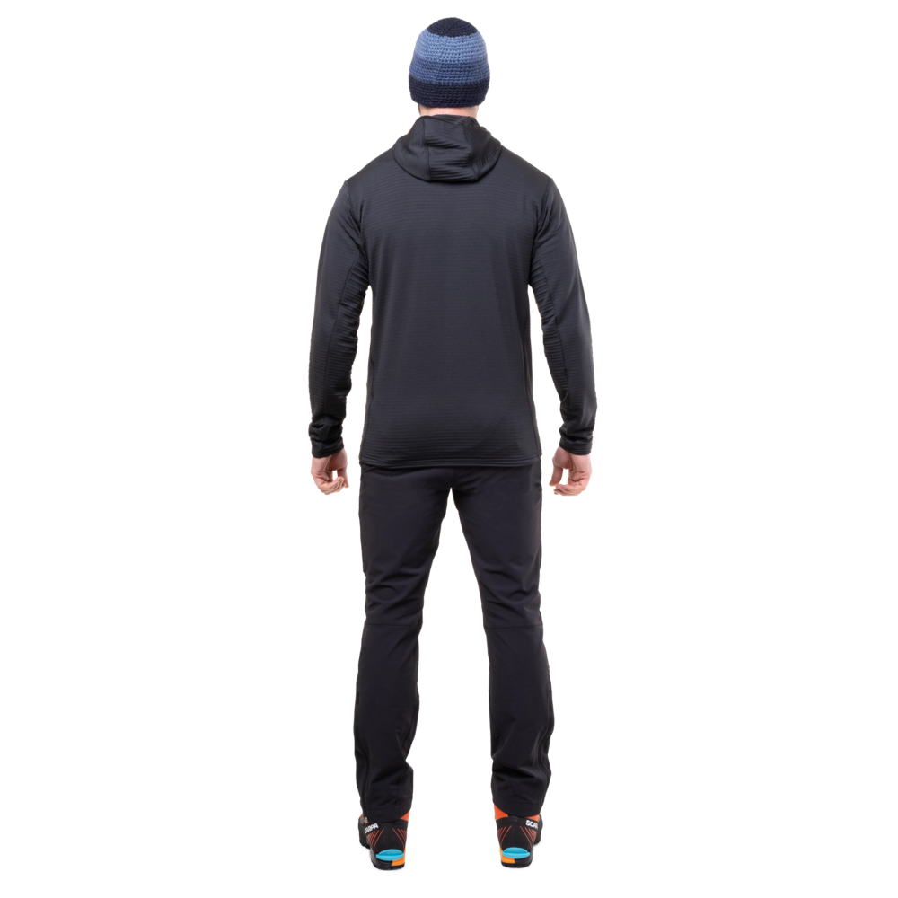 Pánska fleece mikina Mountain Equipment Apiro Hooded Men Jacket black je skvelou voľbou pre akýkoľvek aktívny pohyb v horách počas celého roka.
