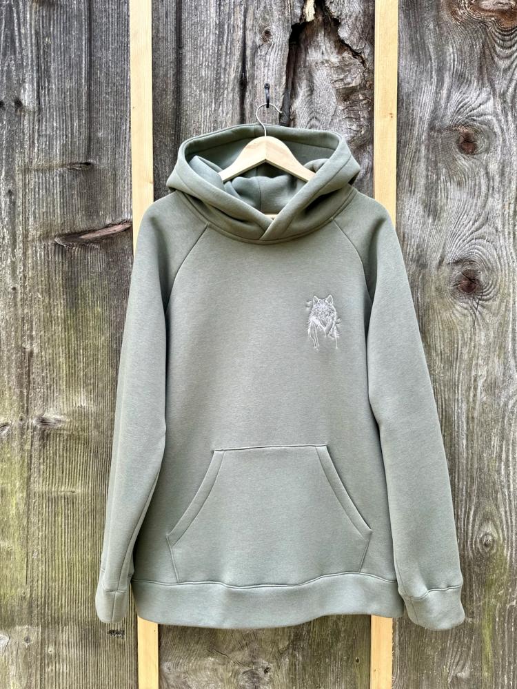 Unisex mikina Nanuk, klasickej dĺžky s výšivkou vlka.