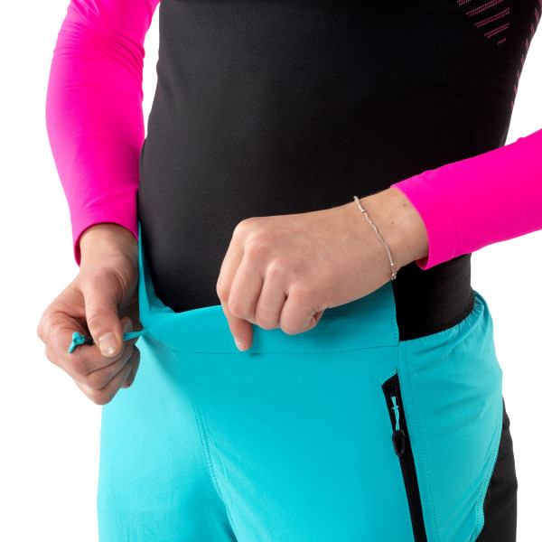 DYNAFIT SPEED DYNASTRETCH W sú ľahké dámske softshellové nohavice špeciálne navrhnuté pre nadšencov skialpinizmu. Hybridná konštrukcia nohavíc ponúka strategicky rozmiestnené materiálové zóny pre zabezpečenie komfortu a optimálnej klímy. Na exponovaných miestach je použitý vetruodolný a oderuvzdorný materiál, v zadnom ohybe kolena vysoko priedušný materiál. Nohavice ďalej ponúkajú predtvarované kolená, nastaviteľný pás, bočné vrecká a zips v spodnej časti.