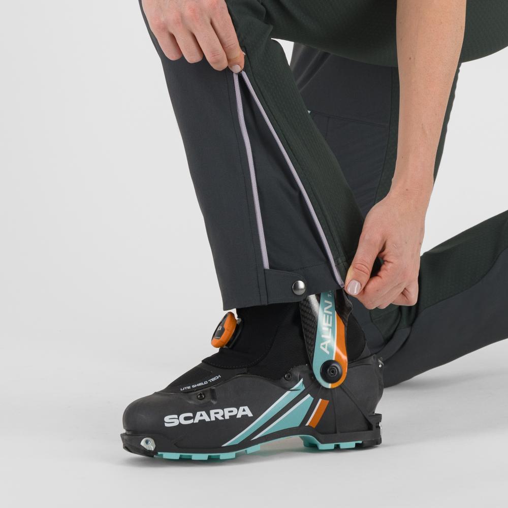 Teplé, priedušné, elastické a veľmi obľúbené dámske skialpinistické nohavice Karpos Alagna Plus 2.0, ktoré zaisťujú maximálnu slobodu pohybu.