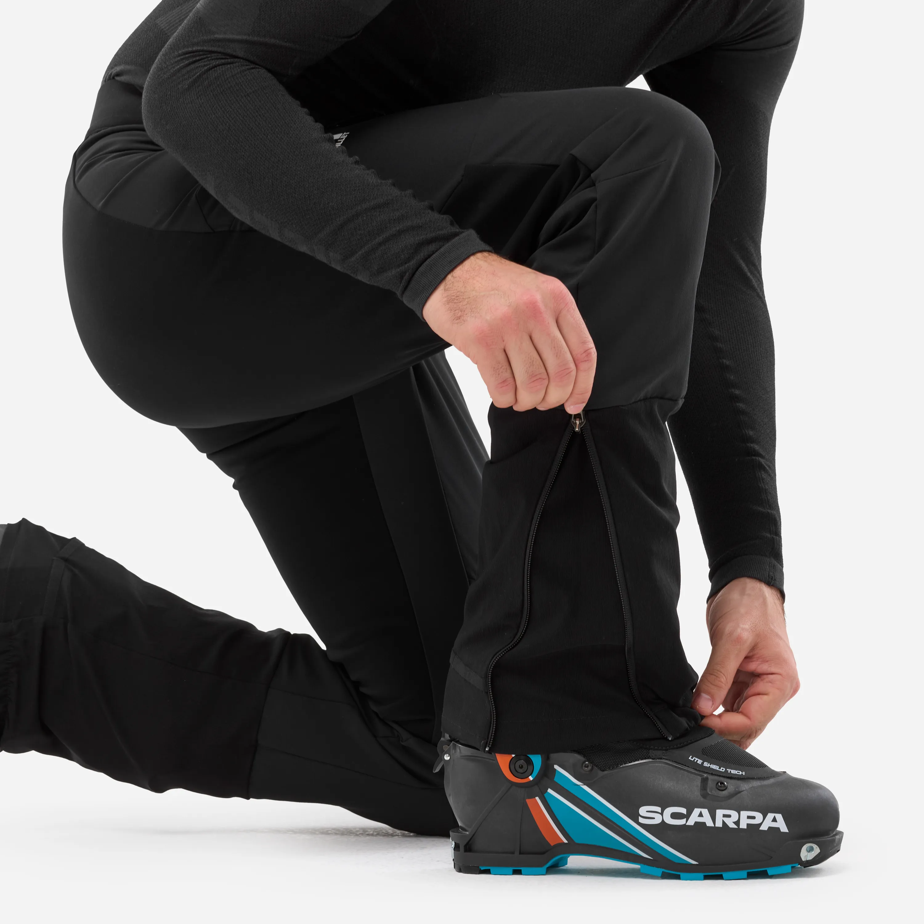 Nohavice majú čiastočne elastický pás so šnúrkou na stiahnutie, predtvarované kolená a bezšvový panel v rozkroku. Konce nohavíc majú otvor na zips s vnútorným klinom. K dispozícii je aj priamy prístup k topánkam na rýchle prepínanie medzi výstupom a zostupom. Na stehne je jedno vrecko na zips.