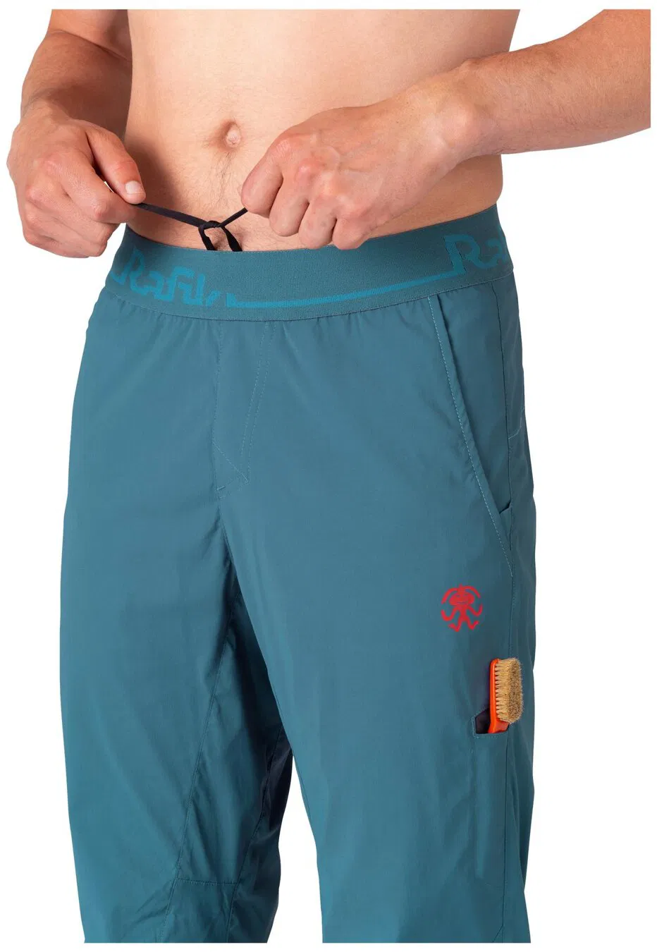 Ultraľahké, vzdušné a pohodlné lezecké nohavice Rafiki Drive, ktoré v páse skvele držia vďaka stiahnutiu do gumy. Vďaka ľahkému materiálu a vzdušnosti sú perfektnou voľbou pre horúce letné dni alebo lezenie vo vnútri, keď z akéhokoľvek dôvodu nechcete siahať po kraťasoch. Môžete si ich nasadiť, keď mierime na skaly, pretože sú pohodlné a môžete sa spoľahnúť, že vás podržia aj pri ťažkých bouldrových pohyboch. Samozrejmosťou je vrecko na kefku, pútko na vrecko s kriedou, ale poteší aj funkčné sťahovanie nohavíc, vďaka ktorému Vám nohavice nebudú plandieť cez lezečky, keď budete práve šliapať vo Vašom najnovšom projekte.