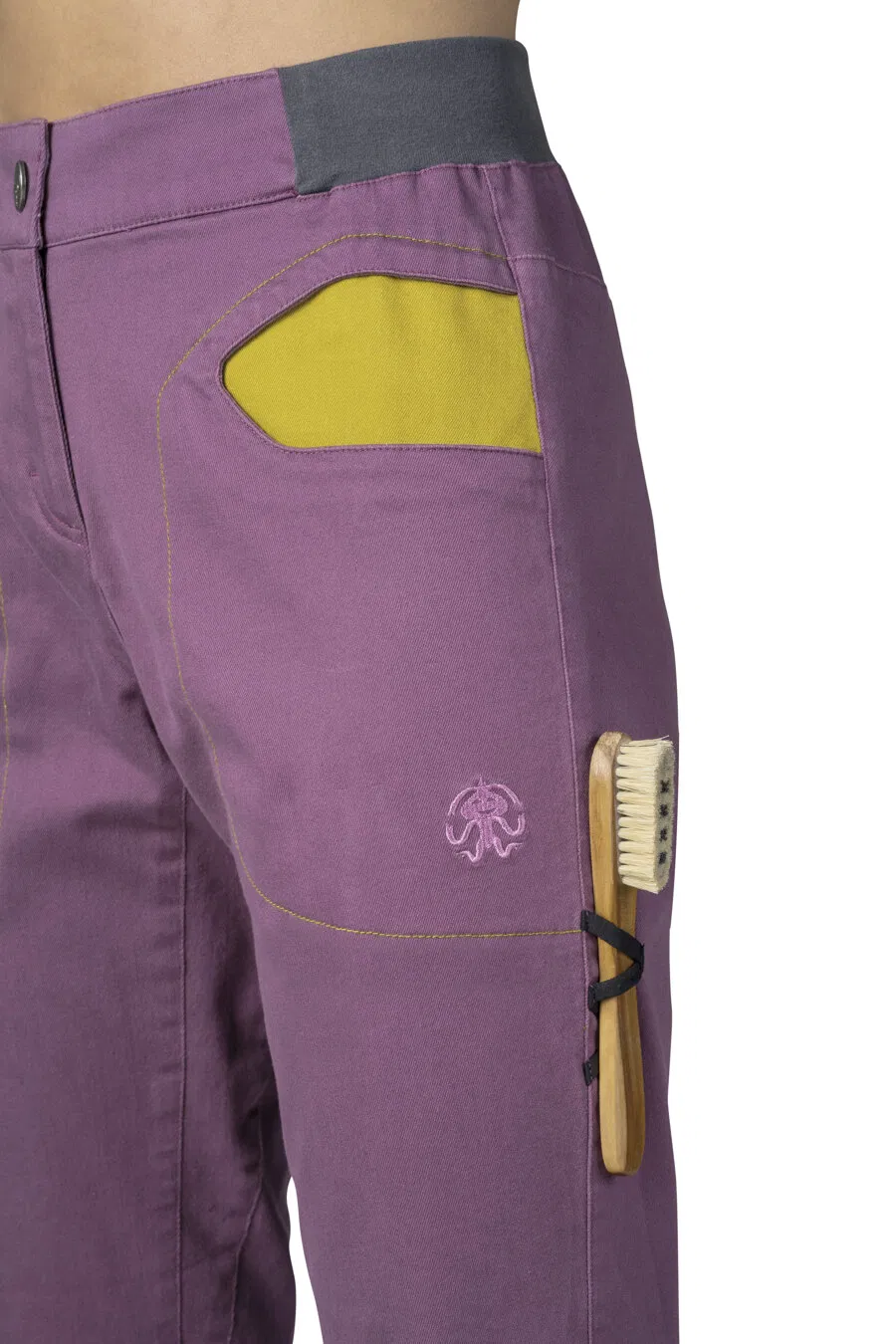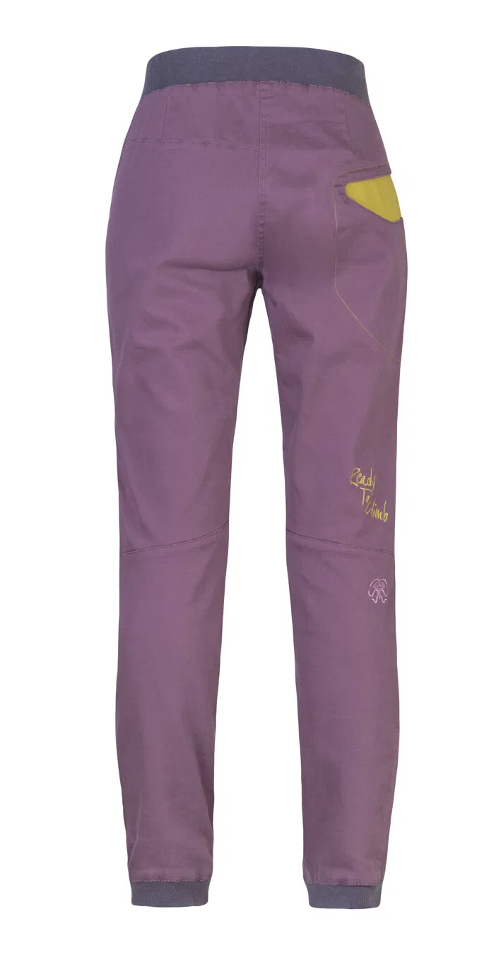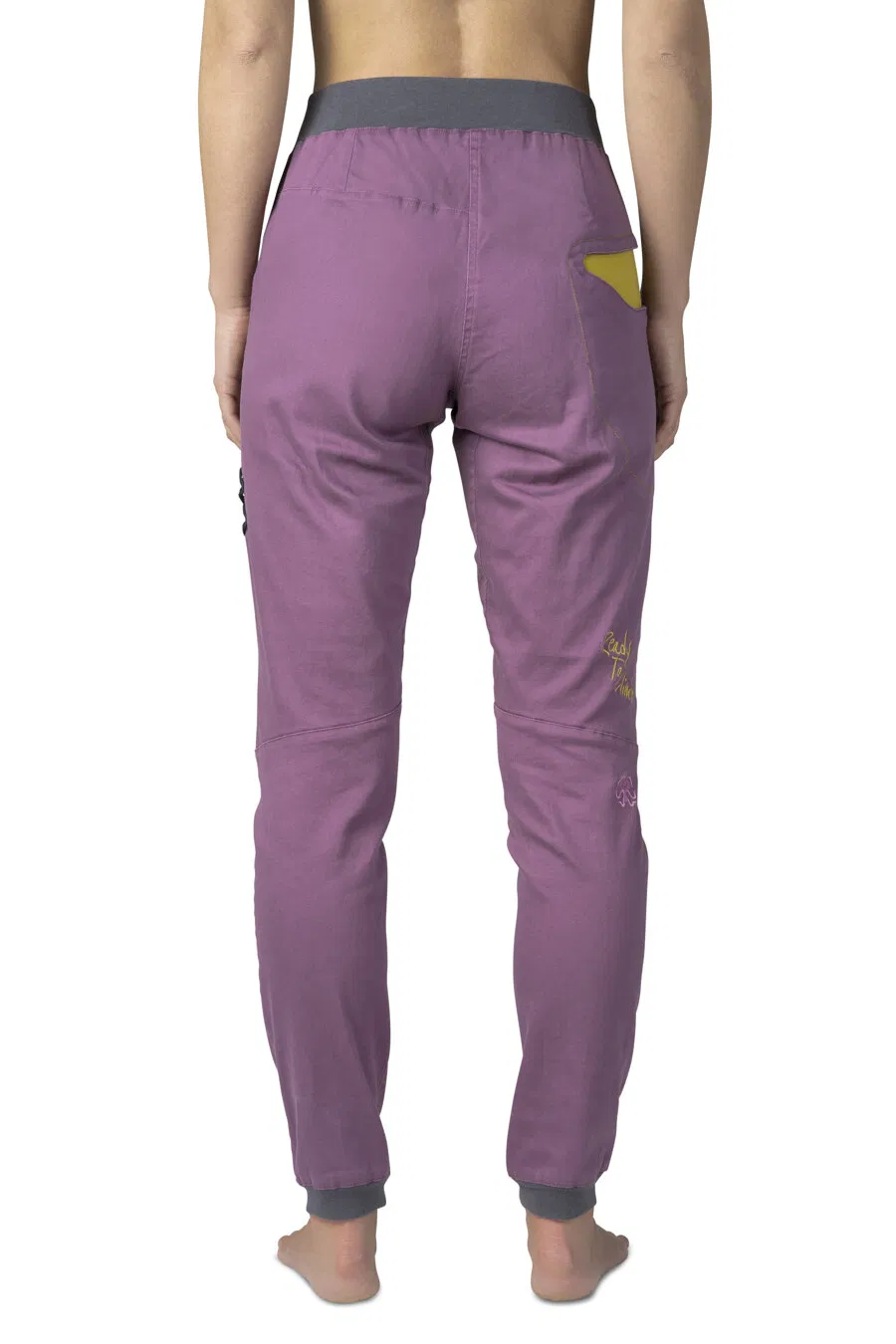 Dámske horolezecké nohavice Rafiki Sierra, civilnejšieho vzhľadu z pevnej bavlnenej tkaniny, ktorá vydrží aj hrubšie zaobchádzanie.