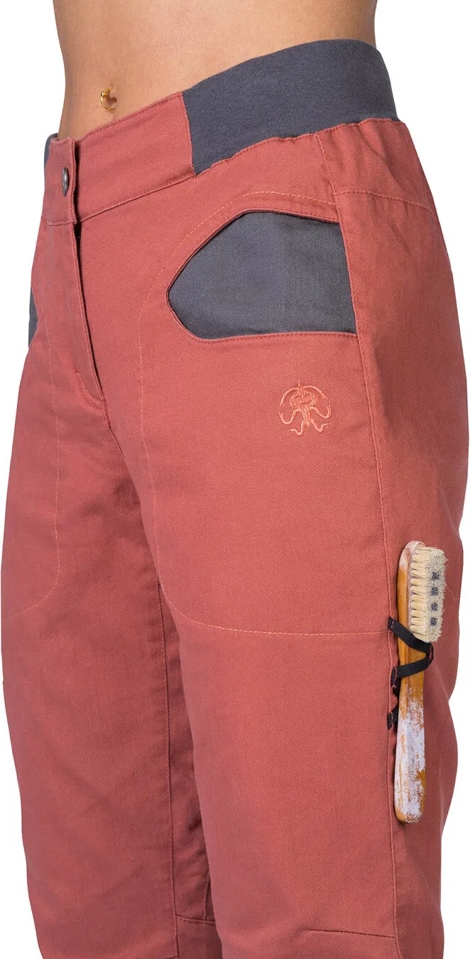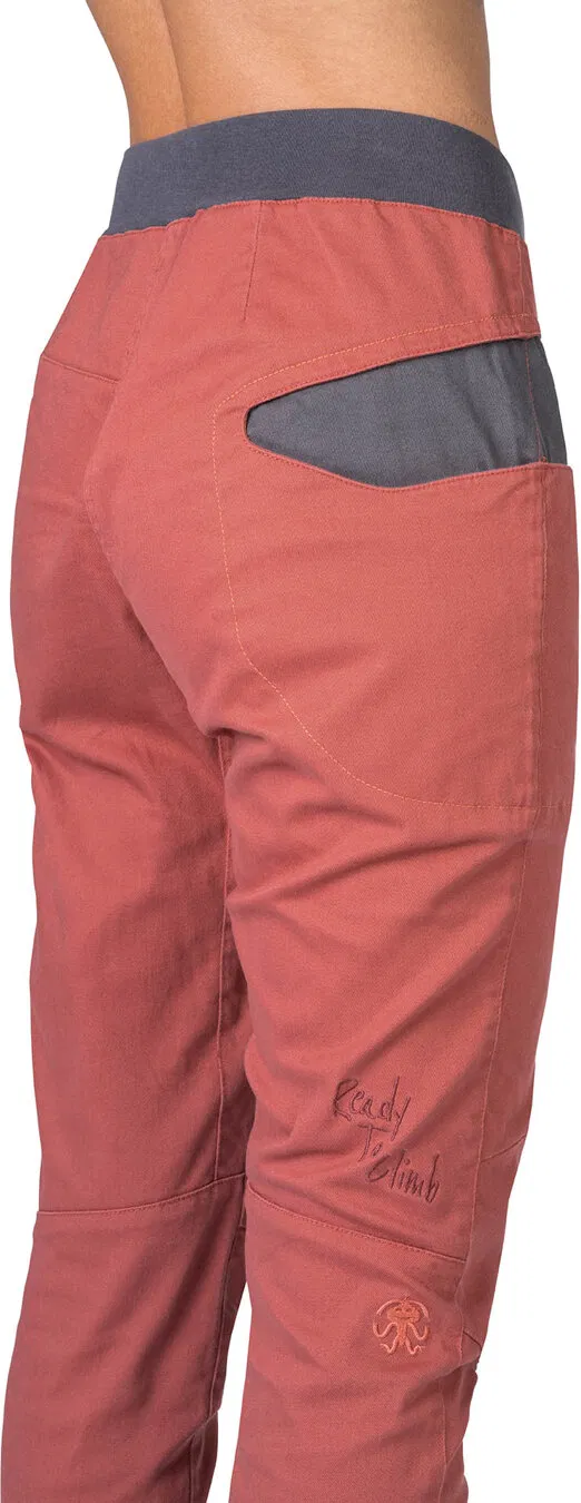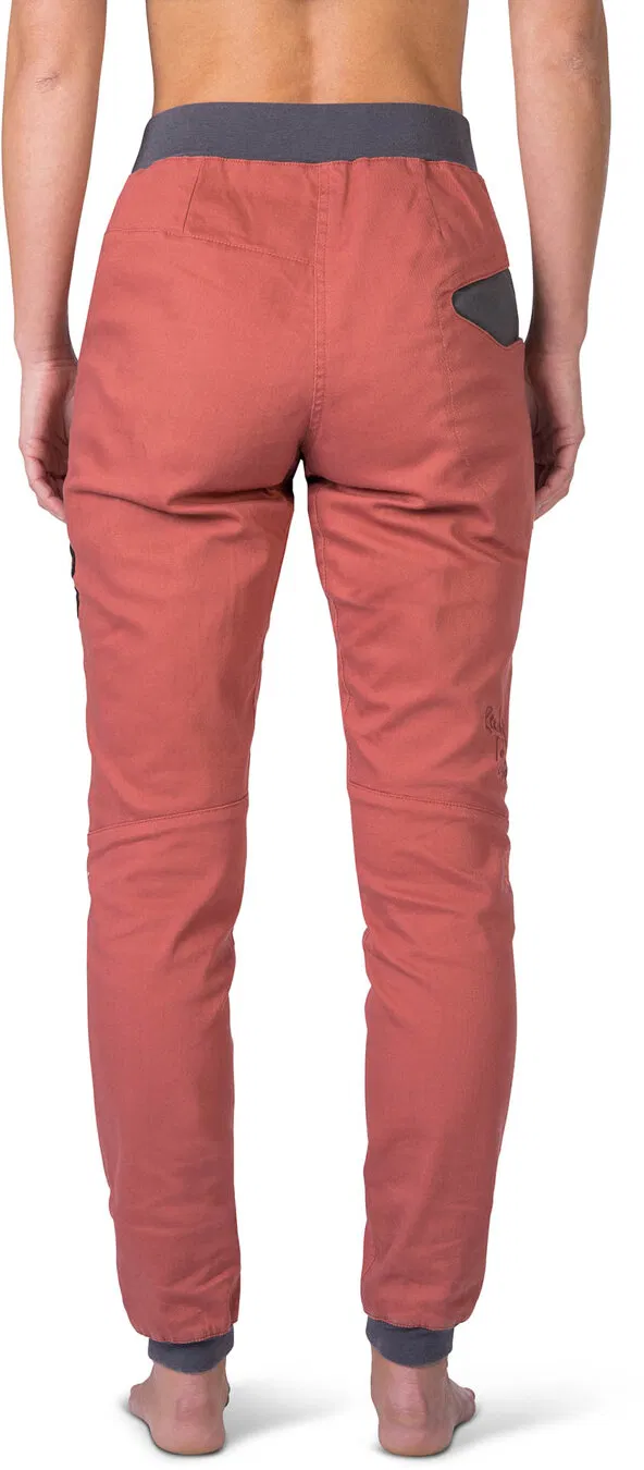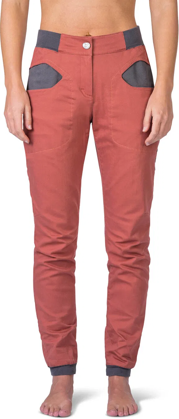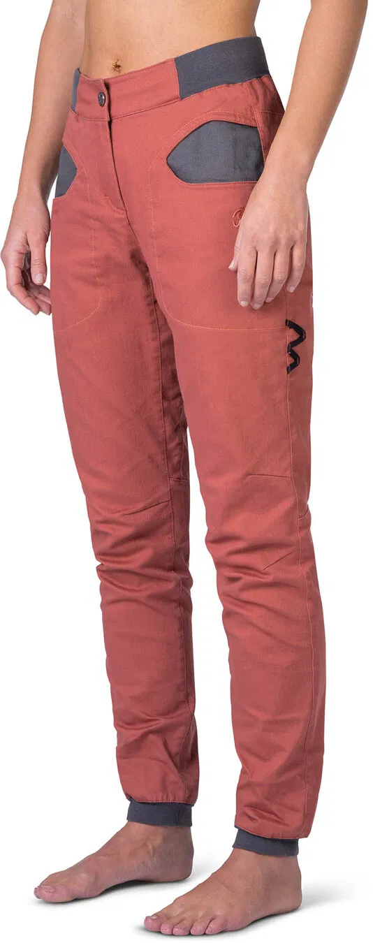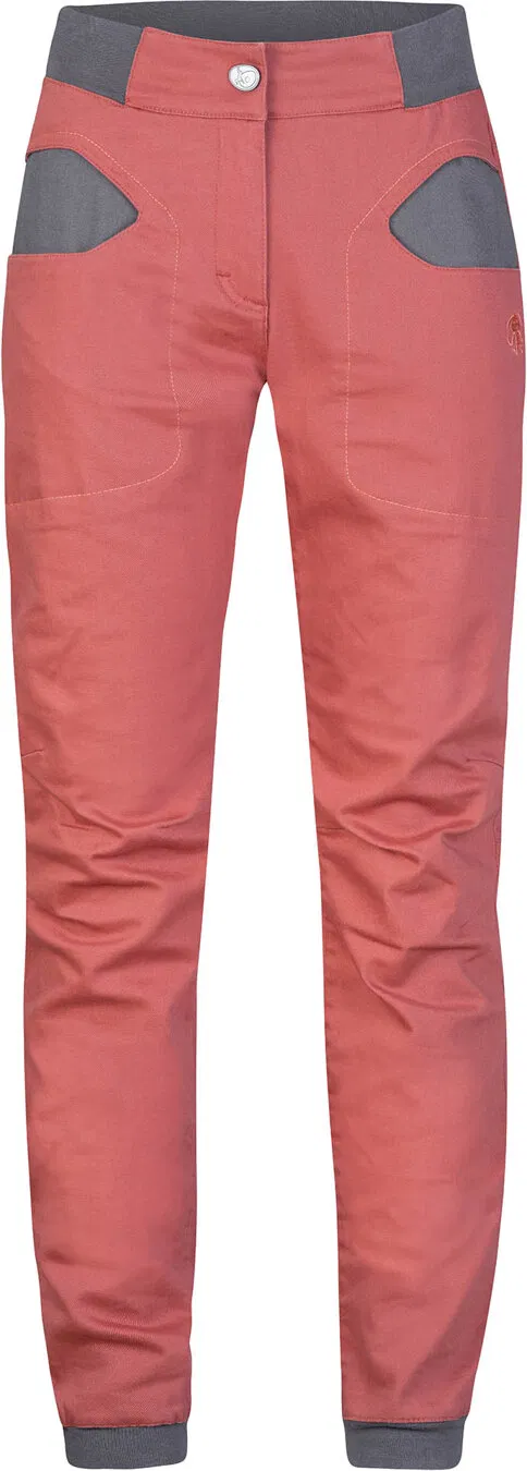 Dámske horolezecké nohavice Rafiki Sierra, civilnejšieho vzhľadu z pevnej bavlnenej tkaniny, ktorá vydrží aj hrubšie zaobchádzanie.
