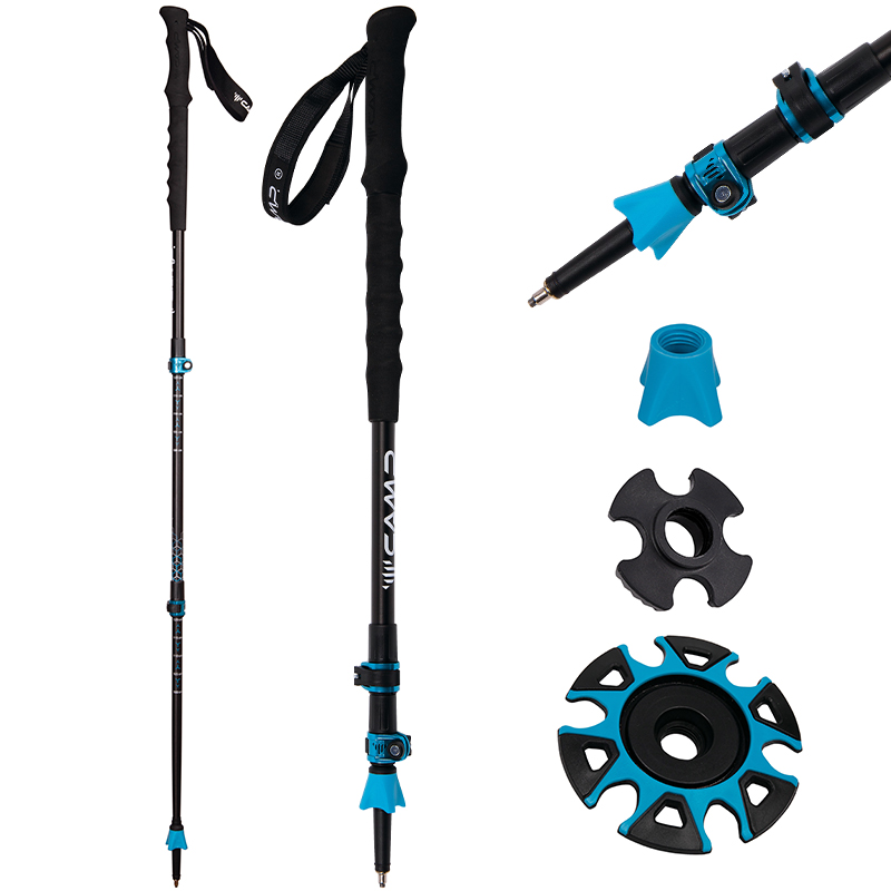 Teleskopické 3dielne trekové palice Camp Backcountry GT s predĺženými mäkkými madlami pre náročné outdoorové výpravy.