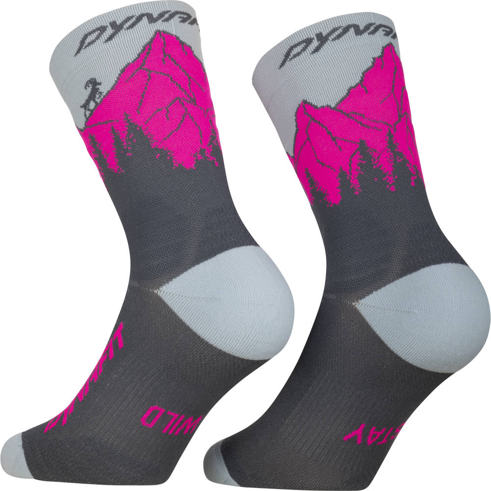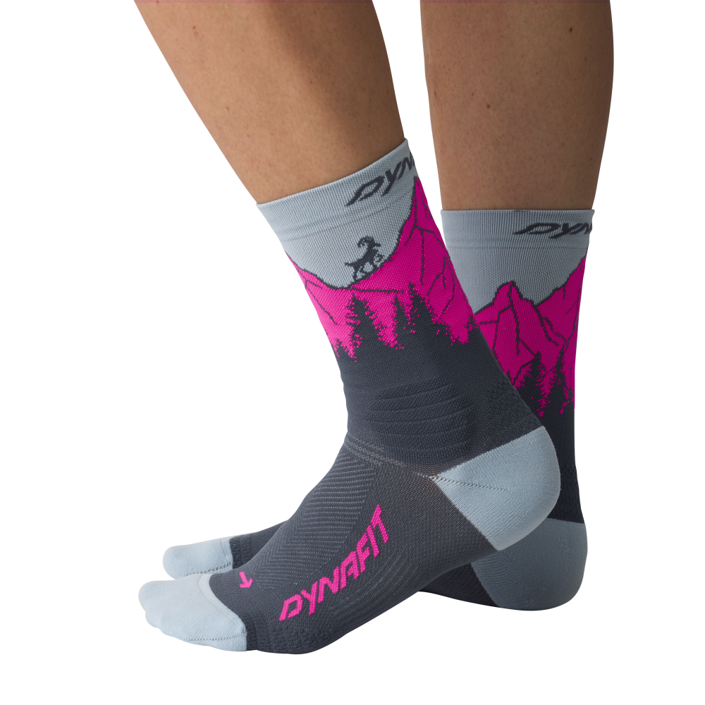 Ľahké, priedušné, anatomické ponožky Dynafit Traverse Crew Socks cinder pink glo na rýchle horské túry.