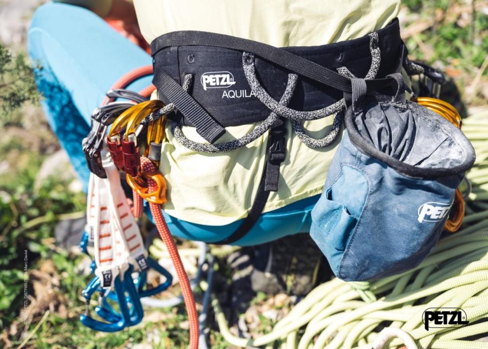 Veľmi pohodlný trojprackový horolezecký úväzok Petzl Aquila, pre výkonostné športové lezenie, horolezectvo aj alpinizmus.