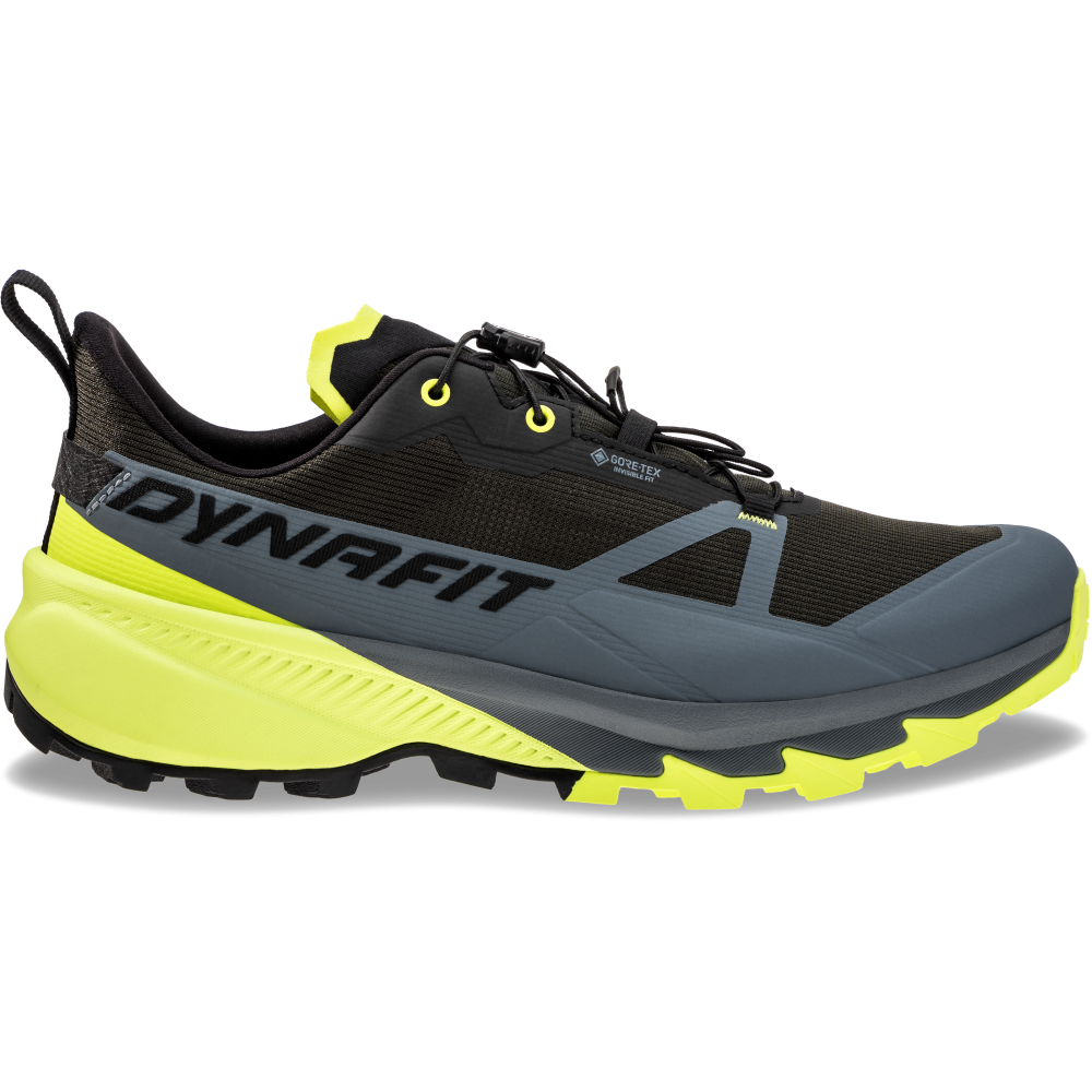 Univerzálna pánska nepremokavá obuv Dynafit Traverse 2 GTX hurricane/black out, navrhnutá na kombináciu trailového behu a ľahkého lezenia, s dôrazom na stabilitu, kontrolu a vysokú úroveň trakcie.