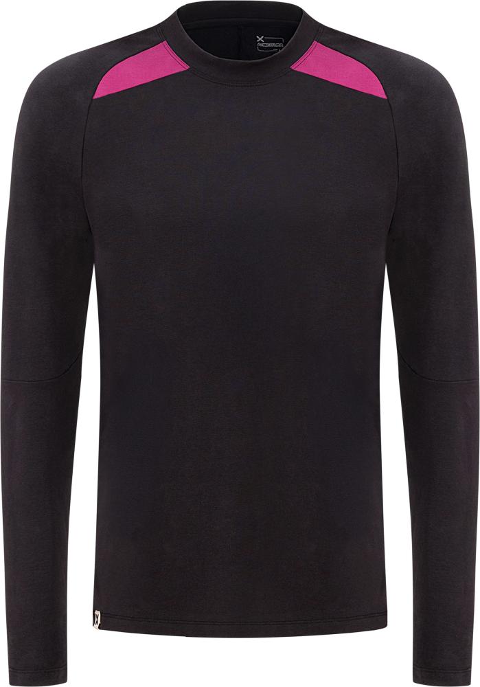 Mäkké, priedušné a prirodzene absorbujúce vlhkosť. Poskytuje pohodlie a slobodu pohybu na dlhých trasách alebo outdoorových aktivitách. Priliehavý stirh zaisťuje skvelé padnutie, zatiaľ čo raglánové rukávy poskytujú väčšiu flexibilitu. Dizajn s farebnými blokmi dopĺňa veľké kontrastné logo Montura na chrbte.