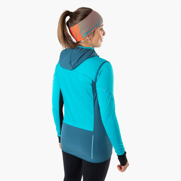 Dámska skialpinistická vesta DYNAFIT MEZZALAMA 2 ALPHA PTC W VEST je ideálna voľba pre každého, kto hľadá ľahkú, zbaliteľnú a priedušnú vestu s kapucňou zateplenú na potrebných miestach. Vesta má atletický strih, výborne sedí na tele aj vďaka elastickému lemu v spodnej časti, je vetruodolná, vodoodpudivá a rýchloschnúca. Je ľahko uskladniteľná v integrovanej kapucni a preto nezaberá takmer žiadny priestor v batohu.