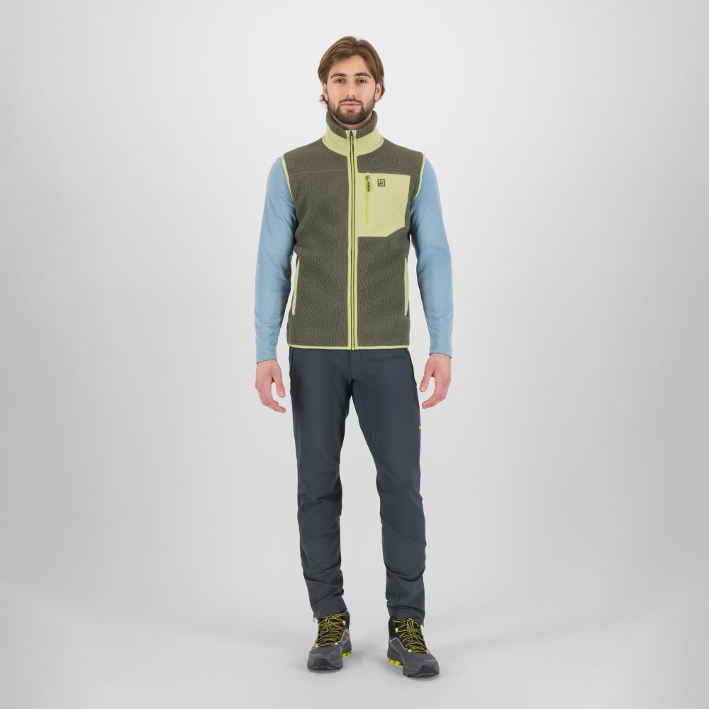 Všestranná pánska vesta Karpos Moiazza Retro FL na outdoorové a voľnočasové aktivity s vetruodolným materiálom a praktickými vreckami.